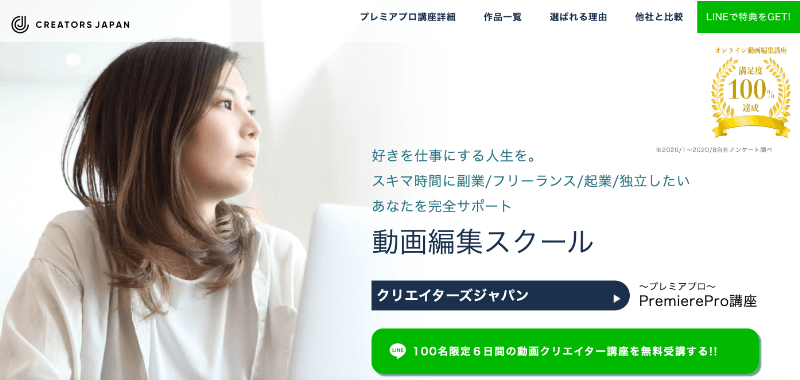 クリエイターズジャパンは、動画編集スキルを身につけてフリーランス・副業を目指す動画編集スクールです。